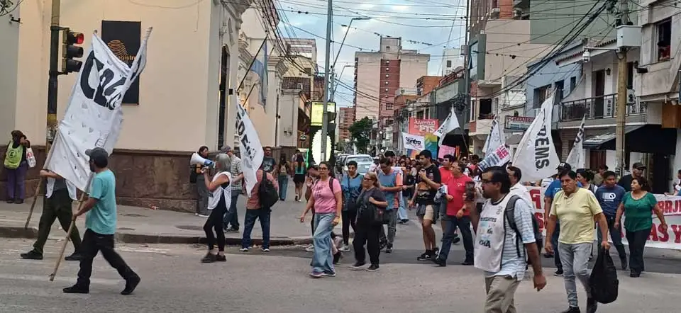 Durante la tarde del miércoles, diferentes gremios, incluyendo CEDEMS, SADOP, SEOM, SOEME Jujuy, UATRE Jujuy y otras agrupaciones marcharon por las principales calles de la ciudad de San Salvador, en reclamo por las mejoras salariales.