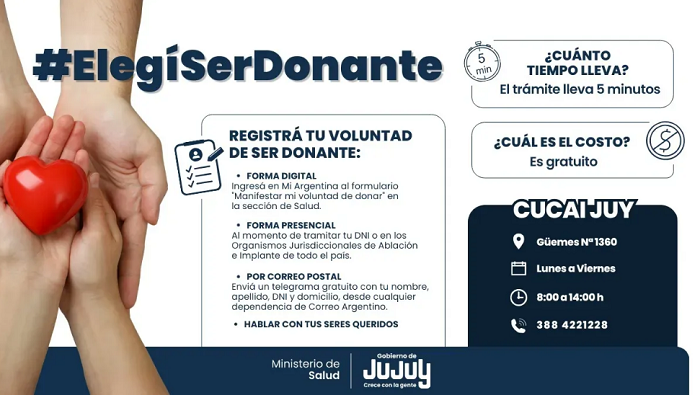 Para más información sobre donación de órganos y tejidos en Jujuy