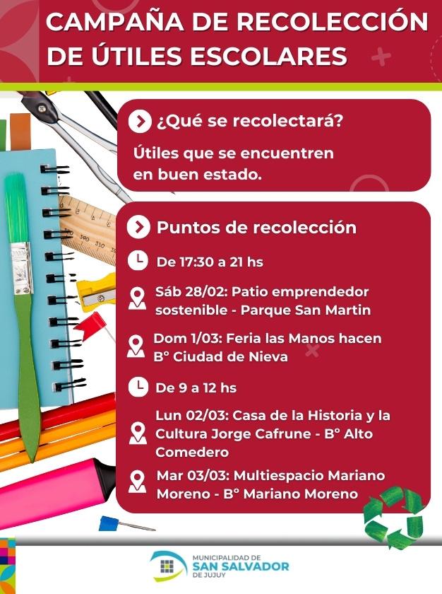 El municipio capitalino lanzó una campaña solidaria para recolectar útiles escolares en buen estado que pueden ser reutilizados por los estudiantes.