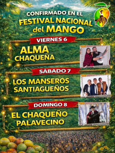 Las actividades iniciarán el sábado 31 de enero con la Elección Nacional de la Embajadora del Mango en el Camping La Costanera a partir de las 18 horas, y la apertura oficial del Festival se realizará el viernes 6 de febrero a partir de las 20 horas, con la presentación de Alma Chaqueña.