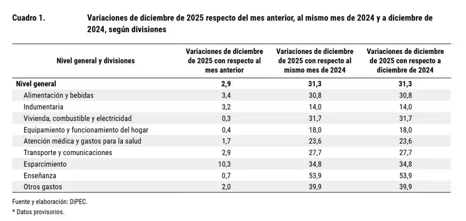 La Dirección Provincial de Estadísticas y Censos (Dipec) publicó un informe en el que confirmó que la inflación durante el mes de diciembre del 2025 en Jujuy, fue del 2,9%.