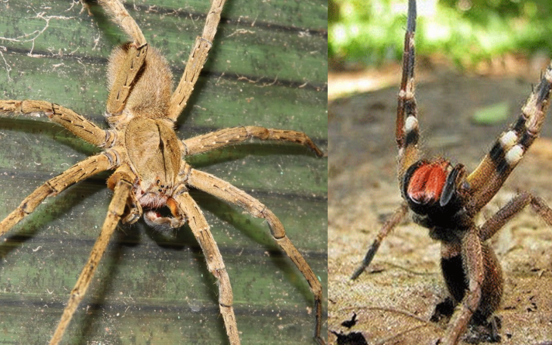 Araña del Bananal: son las únicas arañas verdaderamente agresivas porque, a diferencia de la mayoría de las arañas que muerden solo al ser aplastadas o manipuladas, esta especie puede adoptar una conducta defensiva activa. Es decir, levanta las patas delanteras, muestra los colmillos y puede avanzar o intentar morder si se siente amenazada, sin necesidad de contacto directo. Tienen una contextura robusta y colmillos rojizos.