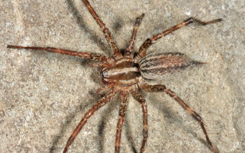 Araña del Pasto: es de color marrón con manchas ocres y presenta un diseño con forma de flecha en la parte posterior del cuerpo. Se las suele encontrar en los jardines y a veces dentro de las casas.