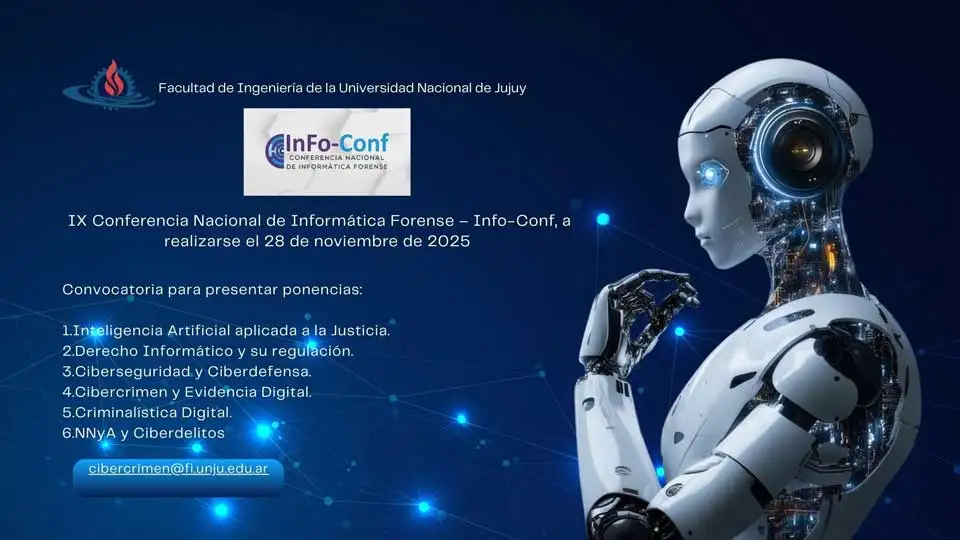 El 28 de Noviembre se desarrollará la IX edición de la Conferencia Nacional de Informática Forense (InFo-Conf 2025), evento anual que convoca a referentes de la Informática Forense, la Investigación Criminal Informática, la Ciberseguridad y en general la Tecnología y el Derecho en las ciencias de aplicación forense, desde su primera edición en 2017.