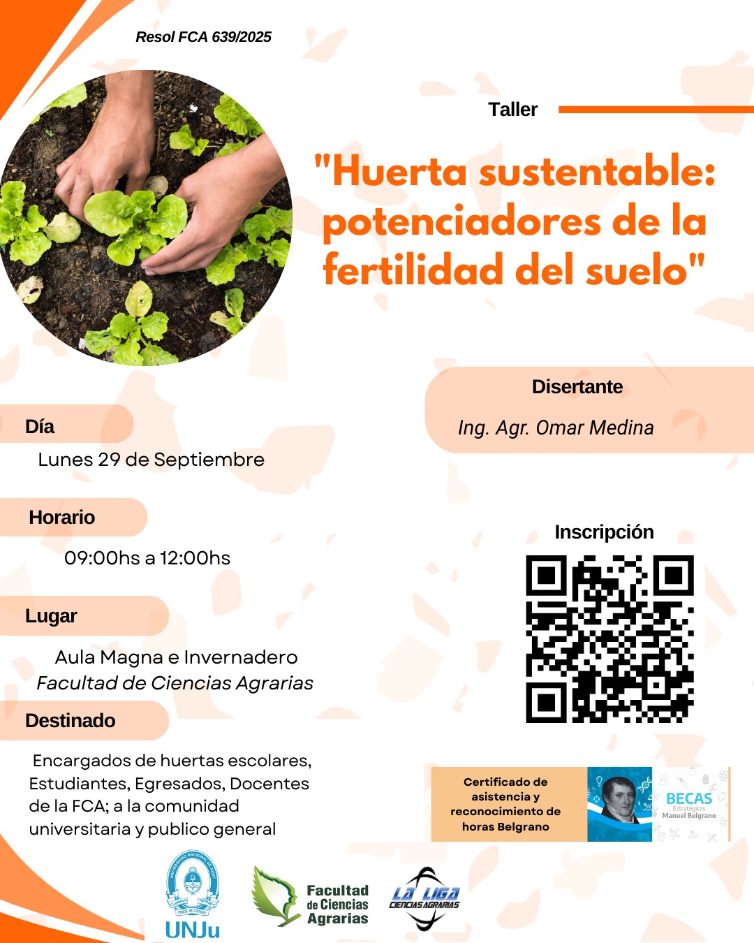 Las actividades comenzarán a las 9 de la mañana, se extenderán hasta las 12 horas y estarán a cargo del disertante Ing Agr, Omar Medina. Esta iniciativa se enmarca en el proyecto de investigación “Producción en las huertas urbanas: estimación del rendimiento de hortalizas en el departamento Dr. Manuel Belgrano” (Res. SECTER N° 2615/24), desarrollado en articulación con la Dirección General Alimentación Saludable del Ministerio de Desarrollo Humano del Gobierno de la Provincia de Jujuy, en el marco del convenio vigente con la Facultad de Ciencias Agrarias de la Universidad Nacional de Jujuy.