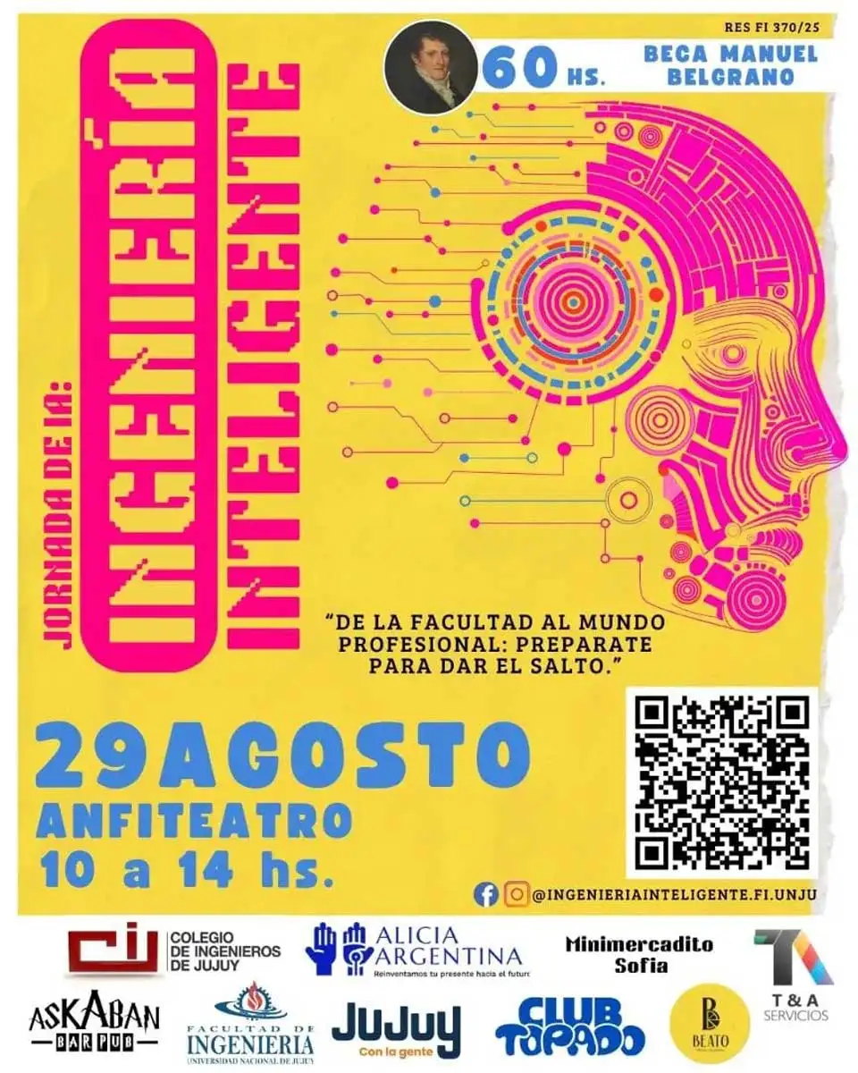 La jornada de Inteligencia Artificial "De la facultad al mundo profesional: Prepárate para dar el salto" será realizada el próximo viernes 29 de agosto en el Anfiteatro de la Facultad de Ingeniería de 10 a 14hs.