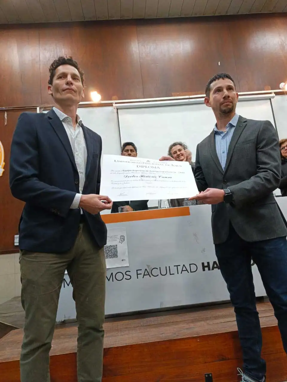 Al momento de su discurso, el Lic. Alejandro Vázquez Reyna destacó la emoción y la alegría en la entrega: "Estoy muy emocionado, es muy fuerte esto son muchos años también de trabajo, viendo tantas caras conocidas acá, la verdad que uno se siente como en casa, siempre tuve una relación muy linda con Jujuy, el equipo siempre estuvo presente desde hace muchísimos años acá y la verdad que es todo emoción, alegría, también sentimos esta responsabilidad de continuar con el trabajo, de acompañar las investigaciones, estamos en representación de todo el equipo, pero sabemos que también mandan muchos abrazos y saludos nuestros compañeros y compañeras que están también pendientes y los abrazan".