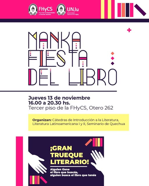 El próximo jueves 13 de noviembre, la Facultad de Humanidades y Ciencias Sociales de la Universidad Nacional de Jujuy realizará la “Manka fiesta del libro”, una propuesta abierta a toda la comunidad que invita a celebrar la lectura de una manera diferente.