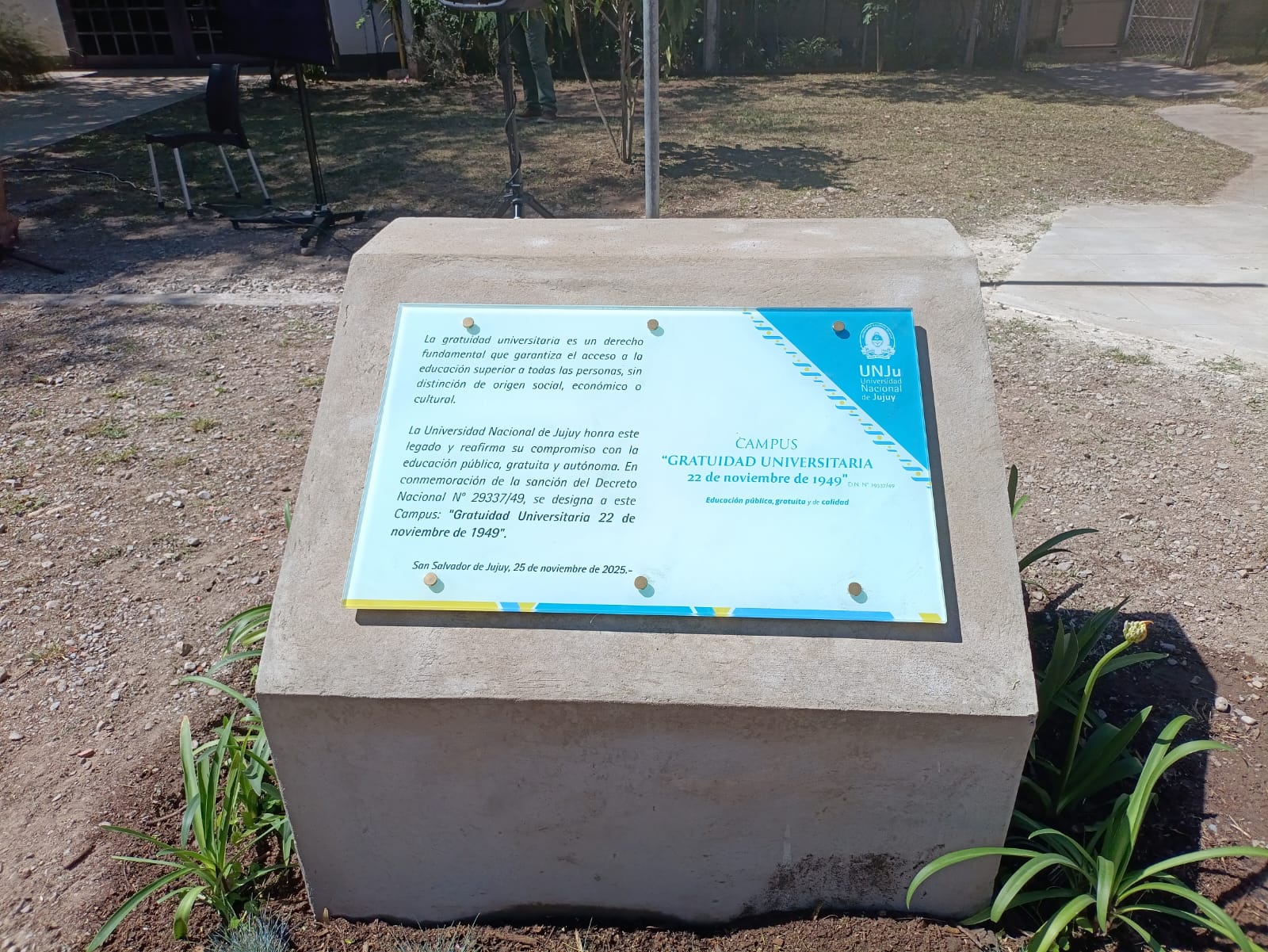 El renombramiento de la Manzana 1 de la UNJu, donde funcionan la Facultad de Ciencias Agrarias, la Facultad de Ingeniería, la Escuela de Minas, el Centro de Atención Primaria de la Salud y el Gimnasio Universitario, forma parte de un proceso de revalorización de los acontecimientos e hitos que marcaron la Educación Superior en nuestro país. El carácter gratuito de la universidad argentina, establecido el 22 de noviembre de 1949, es una de las bases de este sistema que tuvo como resultado el incremento exponencial de la matrícula estudiantil, democratizando la Educación Superior y convirtiéndola en un instrumento de igualación cultural, política y social.