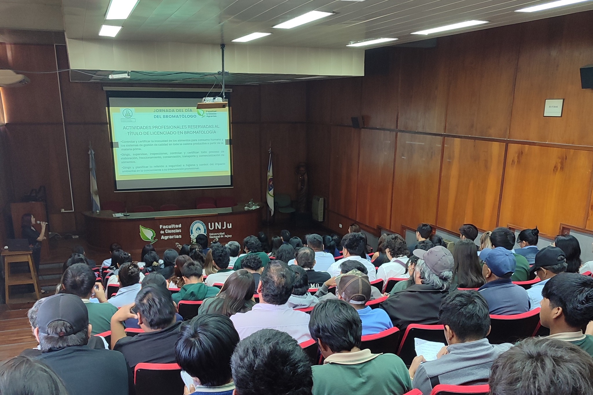 En el marco de la Jornada del Día del Bromatólogo, que se desarrollaron este miércoles en coincidencia con el Día Mundial de la Alimentación, bajo el lema “La seguridad e inocuidad alimentaria es responsabilidad de todos”, organizada por la Facultad de Ciencias Agrarias de la Universidad Nacional de Jujuy (UNJu). La actividad estuvo destinada a docentes, estudiantes, profesionales del área, inspectores municipales y público interesado, con el objetivo de destacar la importancia de la carrera de Bromatología para la provincia, reflexionar sobre el ejercicio profesional, visibilizar investigaciones y fortalecer redes entre el ámbito académico, profesional y municipal.