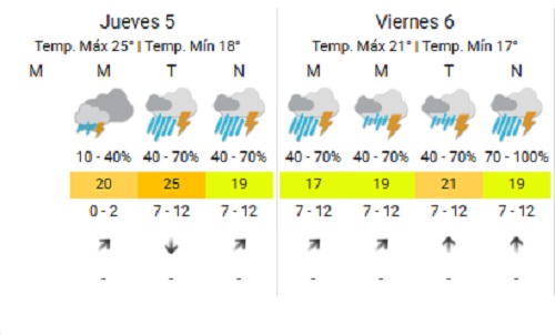 El organismo anunció alerta amarilla por tormentas para el jueves 5 de marzo, y el viernes 6 de marzo, lo que significa "posibles fenómenos meteorológicos con capacidad de daño y riesgo de interrupción momentánea de las actividades cotidianas".