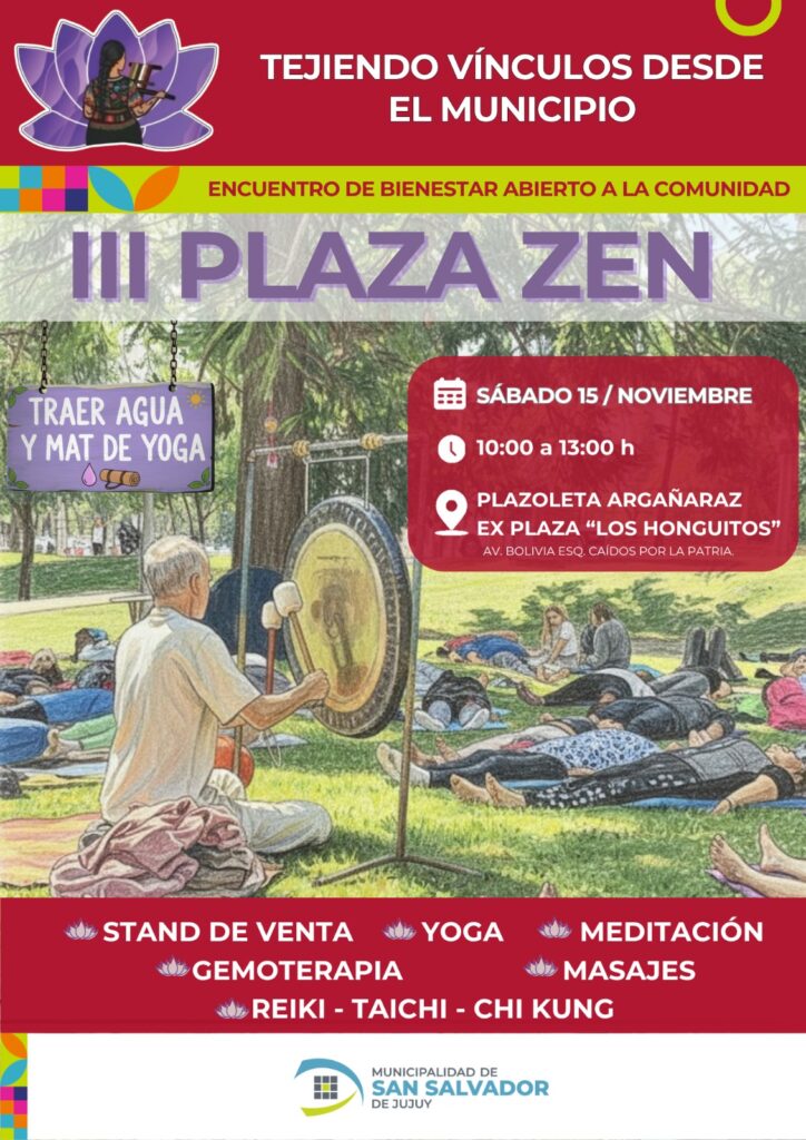 Con el propósito de promover el equilibrio entre cuerpo, mente y emociones, se realizará el 15 de noviembre la tercera edición de “Plaza Zen – Un espacio para tu bienestar”.