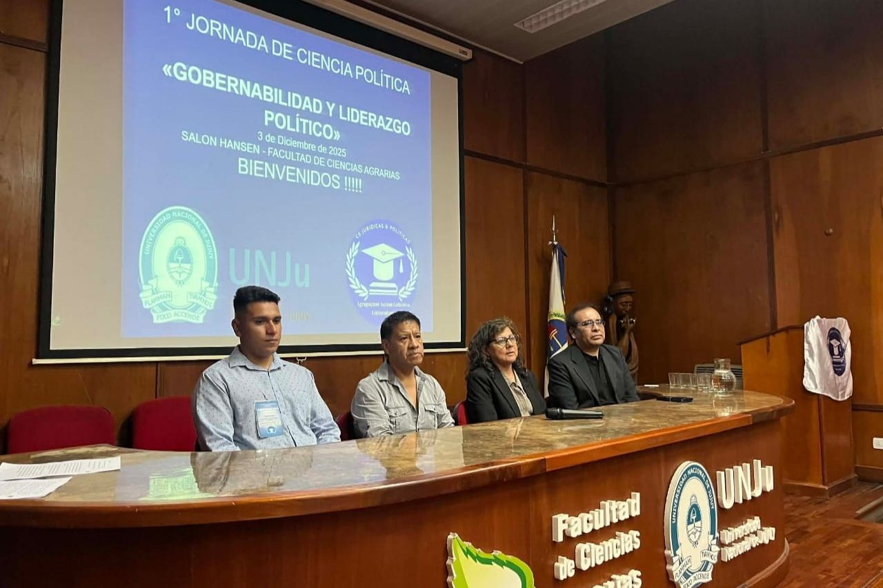 La Facultad de Ciencias Agrarias de la Universidad Nacional de Jujuy fue sede, el miércoles 3 de diciembre, de la "1ª Jornada de Ciencia Política: Gobernabilidad y Liderazgo Político", un encuentro académico que reunió a docentes, egresados, estudiantes y referentes políticos de la provincia. La iniciativa, impulsada por el vicedecano de la Facultad de Ciencias Agrarias Mg. Ing. Agr. Raúl Colque y por Fernando Soto, estudiante avanzado de la Licenciatura en Ciencia Política y presidente de la comisión organizadora, culminó con resultados altamente positivos.