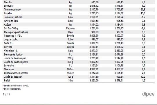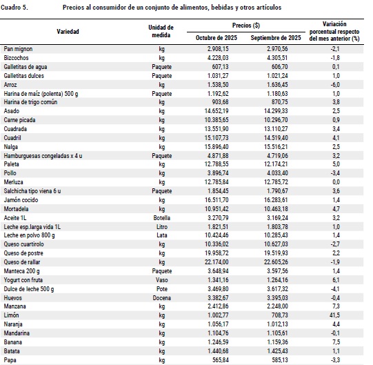 Precios al consumidor de un conjunto de alimentos, bebidas y otros artículos:
