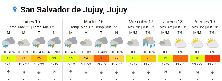 El Servicio Meteorológico Nacional (SMN) pronosticó para la semana del 15 al 19 de septiembre tormentas aisladas y temperaturas máximas de más de 30 grados para San Salvador de Jujuy y alrededores.
