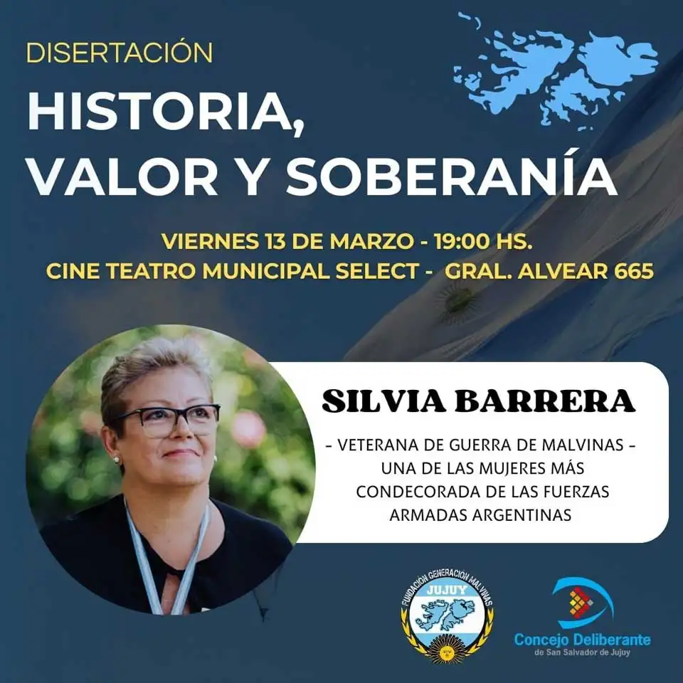 Silvia Barrera, veterana de la Guerra de Malvinas y una de las mujeres pioneras en el Ejército Argentino, fue distinguida como Huésped de Honor en Jujuy. Este viernes brindará una disertación abierta a la comunidad en el Cine Teatro Select, titulada “Historia, Valor y Soberanía”, en la que compartirá su experiencia y la de las mujeres que participaron en el conflicto bélico de Malvinas.