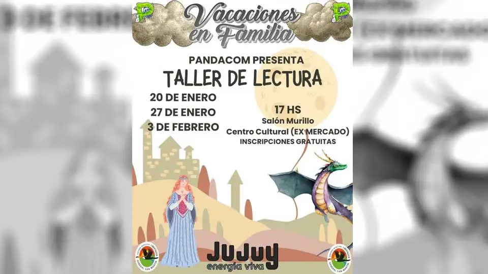 El grupo PANACOM desarrollará un taller de lectura, en el marco de vacaciones en familia, el mismo será en el salón Murillo ubicado en el Centro Cultural (ex mercado municipal), frente a plaza central de Libertador.