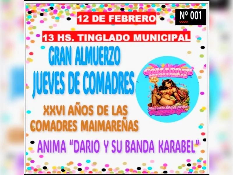 Se invita a la comunidad a participar de una nueva edición del “Jueves de Comadres” con dos grandes propuestas que combinan tradición, música y comida regional.