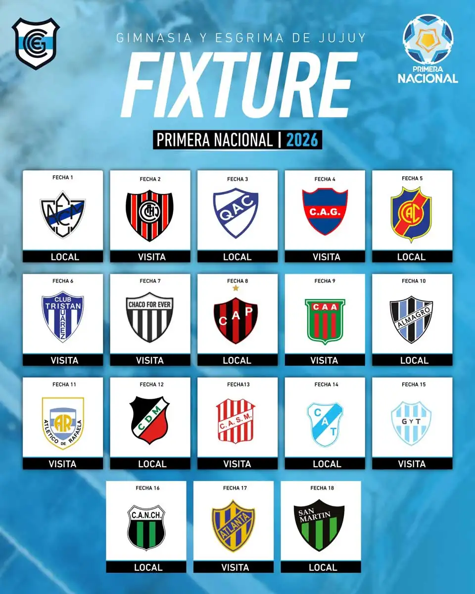 El sorteo realizado por la Asociación del Fútbol Argentino (AFA) para la edición 2026 de la Primera Nacional, definió que Gimnasia y Esgrima de Jujuy integra la Zona B, con debut previsto para el 7 de febrero frente a Ferro Carril Midland en el estadio “23 de Agosto”.