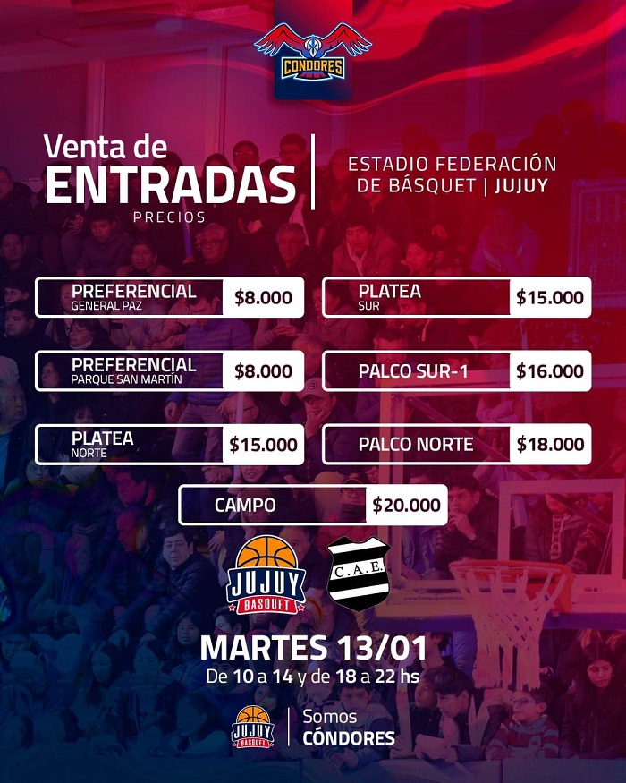 La boleteria del estadio Federación de Básquet estará abierta en doble turno: de 10 a 14 y de 18 a 22 horas.