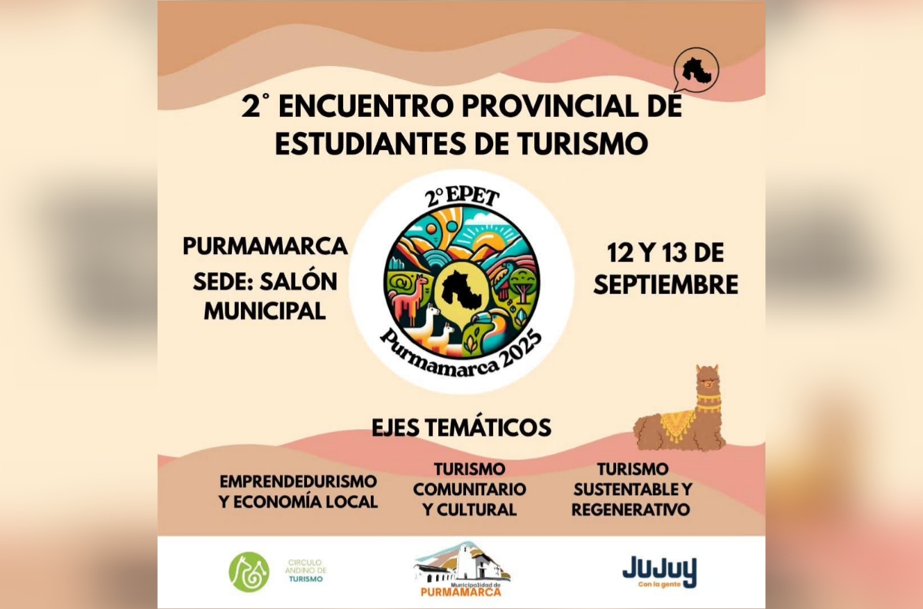 Los días 12 y 13 de septiembre, Purmamarca será epicentro del II Encuentro Provincial de Estudiantes de Turismo (EPET). El objetivo es generar un espacio de intercambio, reflexión y proyección sobre los desafíos actuales y futuros, en una de las localidades más emblemáticas y turísticas de la provincia.