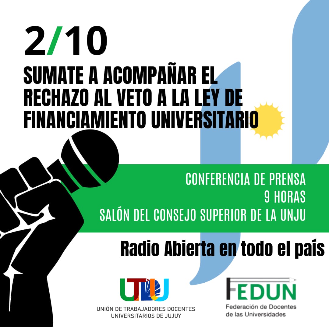 En este marco, a partir de las 9 de la mañana, en el Consejo Superior de la UNJu, gremios, estudiantes, investigadores y docentes, darán una conferencia de prensa con el objetivo de solicitar a los representantes legislativos la insistencia con la Ley.