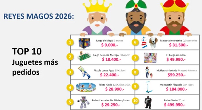Volviendo al informe de la consultora Focus Group, empresa especializada en la investigación de mercado, el regalo para el Día de Reyes Magos registran un aumento de hasta un 33% con respecto al año 2025, el informe estima que la compra promedio rondará los $59.000.