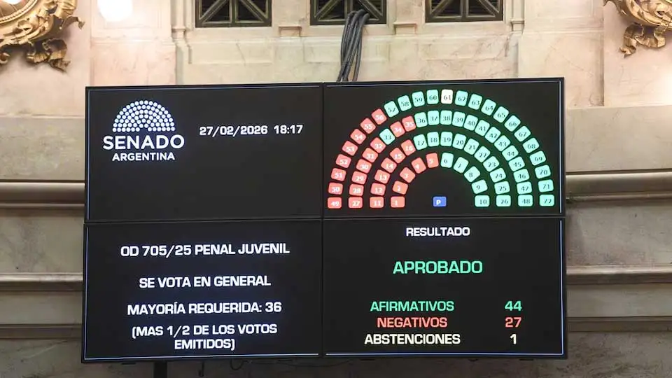 El Senado aprobó este viernes la baja de edad de imputabilidad de los menores de 16 a 14 años con la reforma de la Ley Penal Juvenil. La votación resultó 44 votos positivos y 27 negativos.