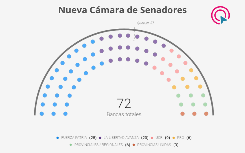 En simultáneo, el peronismo redujo su representación de 34 senadores (a tres del quorum) a 28.