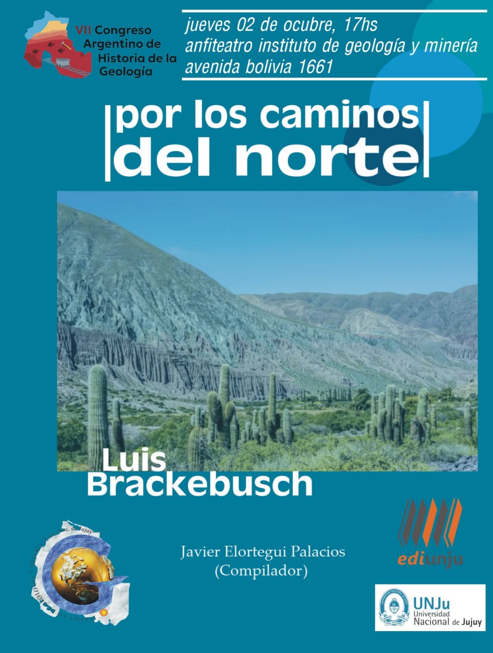 Del 1 al 4 de octubre se desarrollará, en el Instituto de Geología y Minería de la Universidad Nacional de Jujuy, el VII Congreso Argentino de Historia de la Geología, que tiene como propósito dar a conocer aspectos destacados de la Historia de la Geología Argentina, abordando personalidades, eventos e instituciones que contribuyeron al desarrollo de la geología argentina.