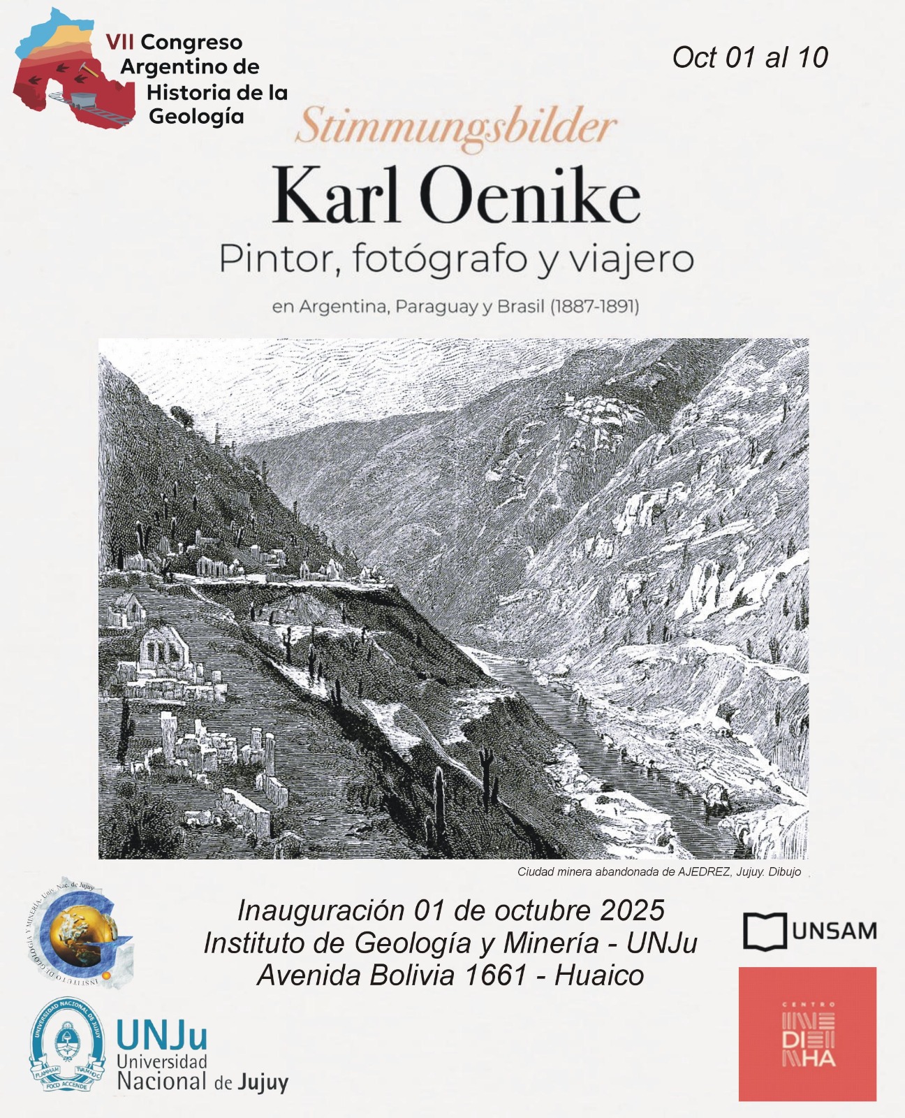 El Congreso continuará con una serie de ponencias, exposiciones y clases magistrales. Entre las actividades previstas destacan la apertura al público de la muestra Stimmungsbilder - Karl Oenike - "Pintor, fotógrafo y viajero en Argentina, Paraguay y Brasil (1887-1891)", que estará disponible en el Instituto de Geología y Minería ubicado en Av. Bolivia 1661 hasta el 10 de octubre.