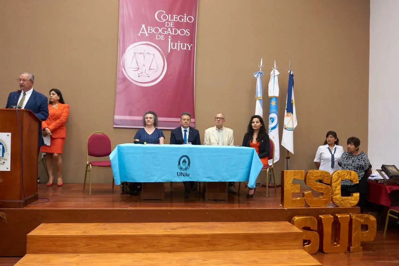 Estuvieron presentes el Mg. Ing. Mario Bonillo, rector de la Universidad Nacional de Jujuy, la Dra. Liliana Bergesio, vicerrectora de la Universidad Nacional de Jujuy, el Dr. Arturo Pfister Puch, director de la Escuela Superior de Ciencias Jurídicas y Políticas, la Esp. Lic. Soledad Ríos, coordinadora académica de Escuelas Superiores de la UNJu y el Dr. Gustavo Macias, Director de la Escuela Superior de Salud.