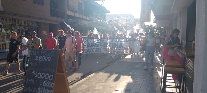 Este miércoles por la tarde un multitud marchó por las calles céntricas de la ciudad de San Salvador de Jujuy en contra del proyecto de Reforma Laboral que impulsa el Ejecutivo Nacional y se trata en el Senado. Distintos sindicatos estatales y privados se movilizaron para manifestar su descontento por considerar que los cambios que propone el proyecto van en contra de los derechos de los trabajadores. Algunos gremios aprovecharon la ocasión para solicitar una mejora salarial y anunciar un plan de lucha en caso de no ser escuchados.