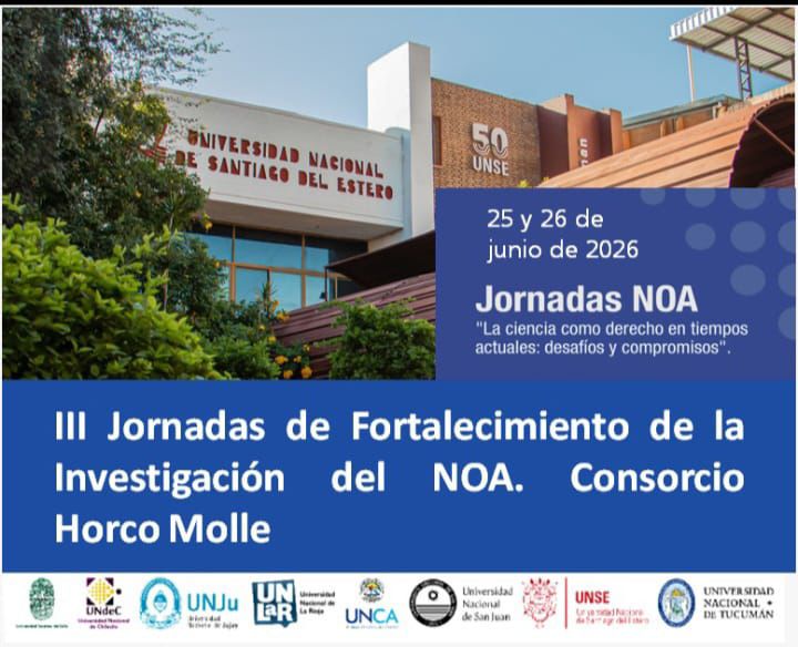 La Secretaría de Ciencia y Técnica y Estudios Regionales de la Universidad Nacional de Jujuy convoca a investigadoras e investigadores a participar de las III Jornadas de Fortalecimiento de la Investigación del NOA – Consorcio Horco Molle, que se realizarán los días 25 y 26 de junio de 2026 en la Universidad Nacional de Santiago del Estero.