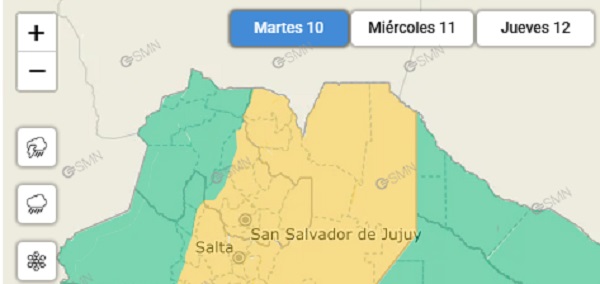 El Servicio Meteorológico Nacional (SMN) lanzó hoy un alerta amarillo por tormentas para la tarde noche de este martes 10 de marzo y el miércoles 11 todo el día en gran parte de Jujuy. Según la información hay un 70% de probabilidad de lluvias fuertes para lo que resta de la jornada de hoy y mañana. Organismos de emergencias de la provincia brindaron recomendaciones para mitigar los efectos de las intensas lluvias.