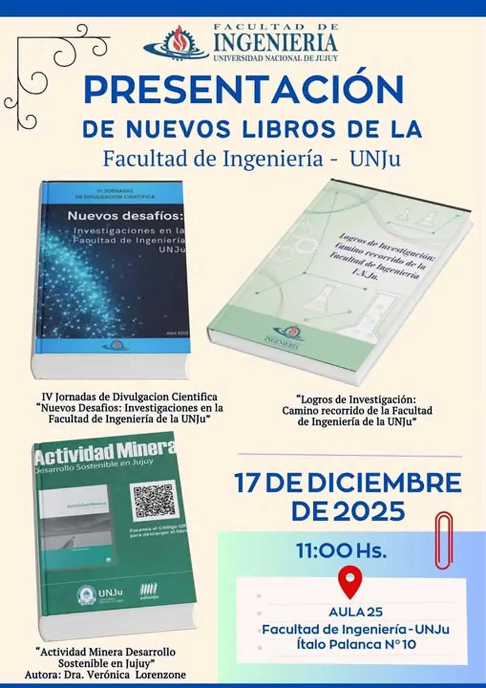 El evento se realizará este miércoles 17 de diciembre desde las 11hs. en el aula 25 de la Facultad de Ingeniería de la Universidad Nacional de Jujuy.